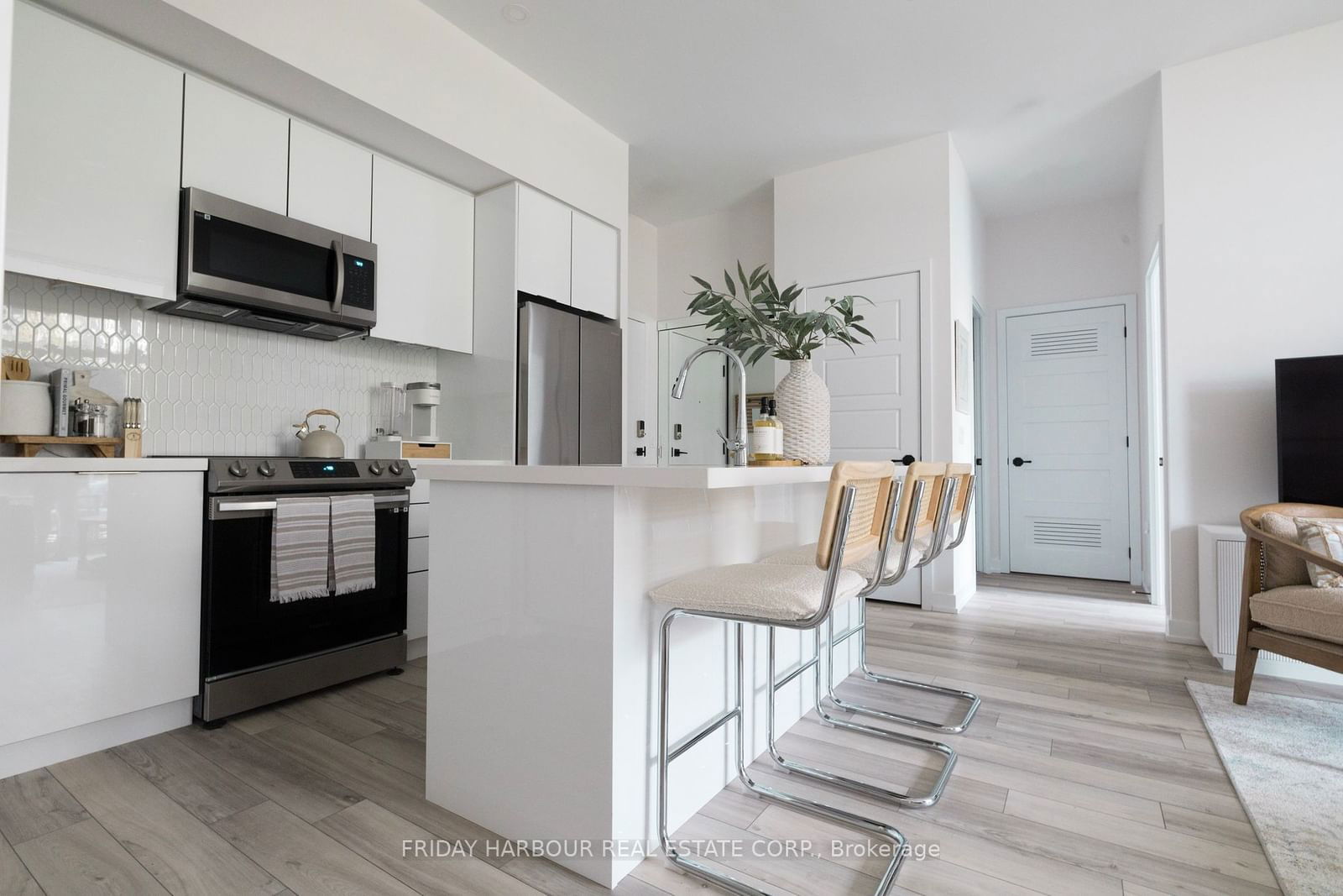 This stunning 2-bedroom, 2-bathroom condo at Friday Harbour Resort offers a luxurious and convenient living experience with exceptional upgrades and features throughout. Boasting impressive 10-foot ceilings, the home feels bright and spacious. The ground-floor location provides direct access to a private patio, perfect for relaxing or entertaining, just steps away from the inviting private pool and hot tub. Professionally decorated with a modern, stylish touch, this condo comes fully furnished, making it move-in ready! Whether you're enjoying the serene outdoor space or the beautifully designed interior, this condo offers the perfect blend of comfort and elegance. Don't miss the opportunity to make this exquisite retreat your own! Monthly Maintenance fee $583.50 / Monthly Club fee $224.97 / Annual Resort Fee $1704.94. 2% Entry Fee payable by new buyer. Fully Furnished!